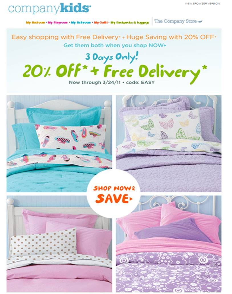 Company Kids, which is part of The Company Store, is offering 20% off EVERYTHING online plus FREE shipping now through tomorrow, March 24th, when you use code EASY at checkout!